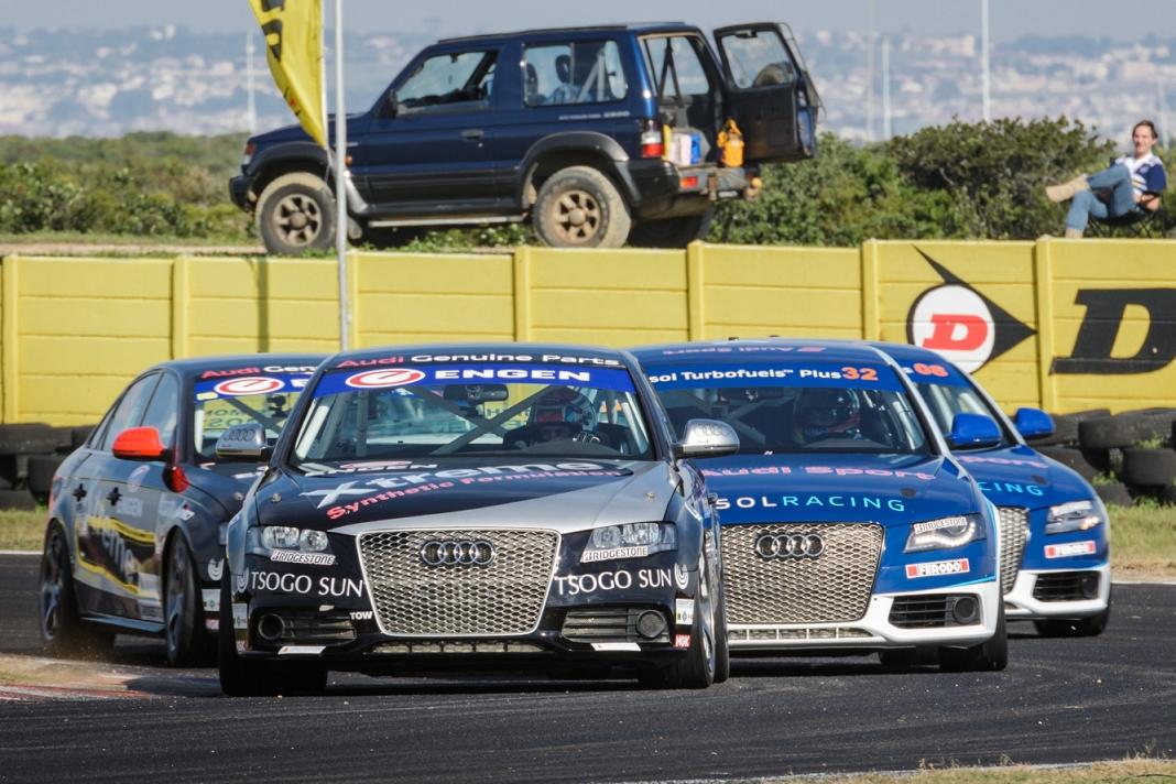 In qualifying it was PE-racer Michael Stephen (12 – Engen Xtreme) that set the pace, with the Audi S4 quattros of Gennaro Bonafede (32 – Audi Sasolracing), Simon Moss (38 – Engen Xtreme) and Hennie Groenewald (8 – Audi Sasolracing) following.
